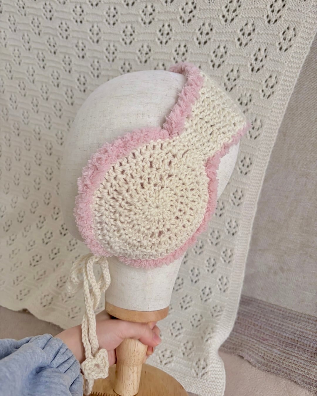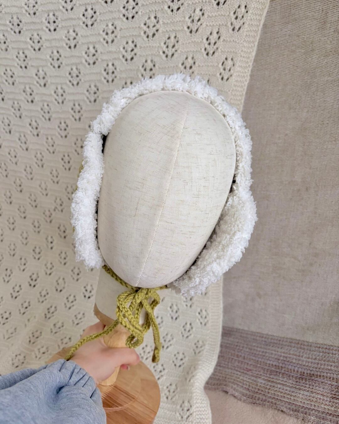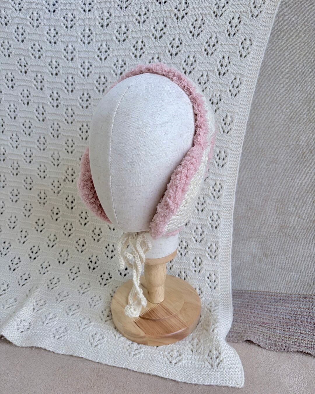 ふわふわもふもふのイヤーマフ·͜· ꕤ︎︎ あごの下で縛れるデザインで 紐の先には小さなハートが付いています❤︎