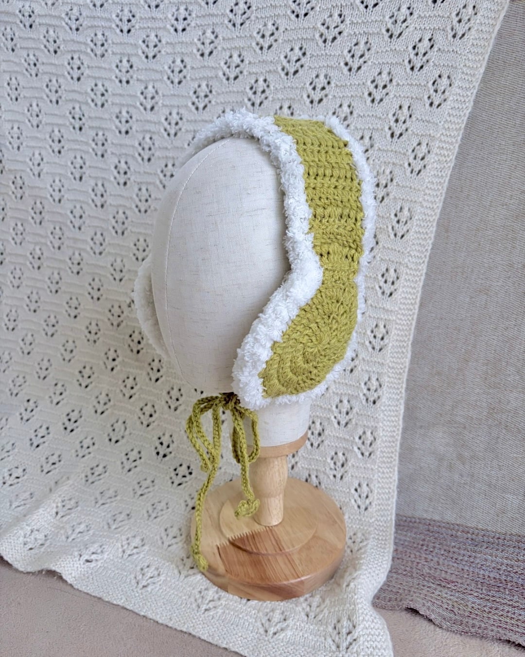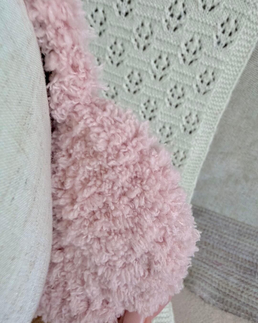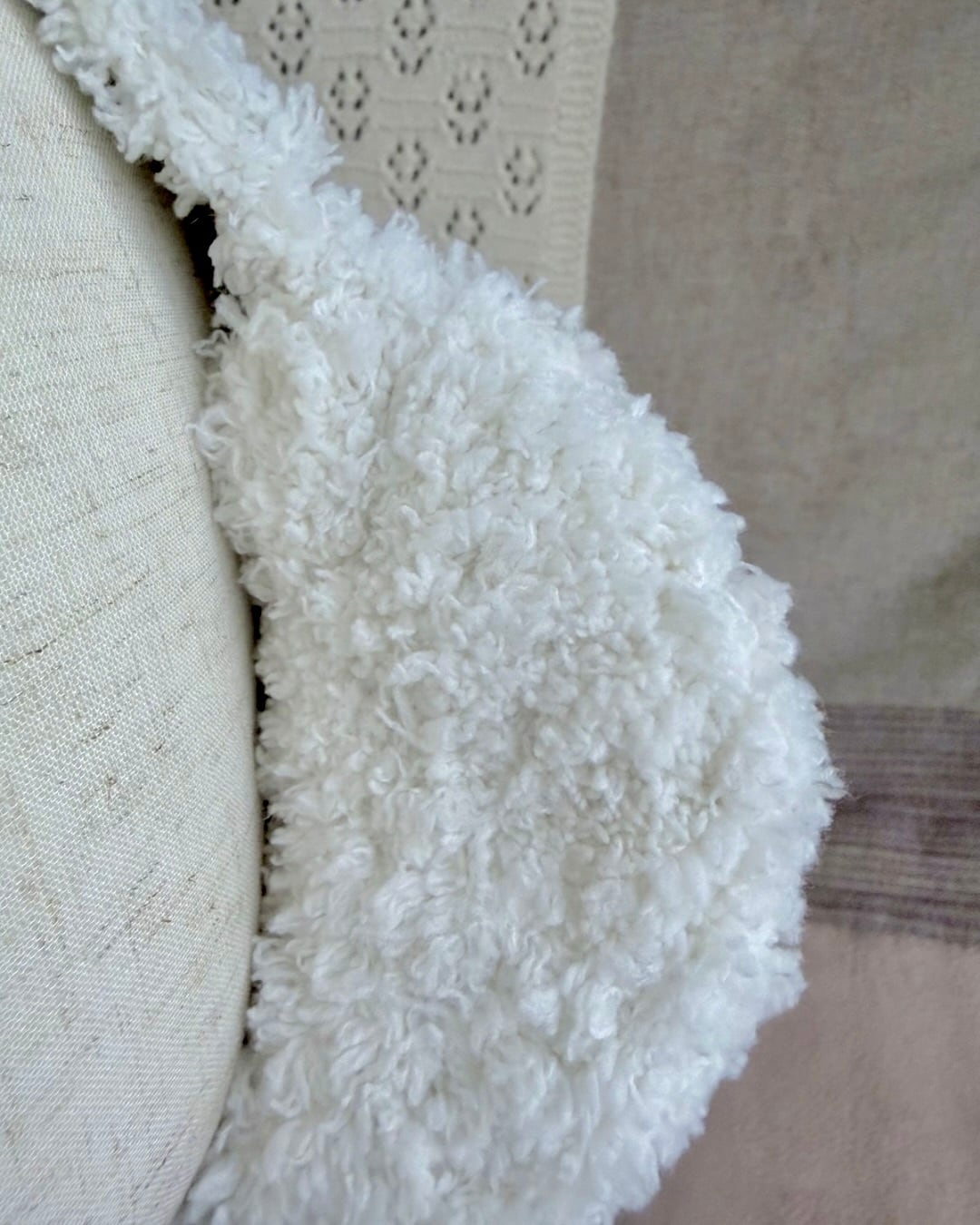 ふわふわもふもふのイヤーマフ·͜· ꕤ︎︎ あごの下で縛れるデザインで 紐の先には小さなハートが付いています❤︎